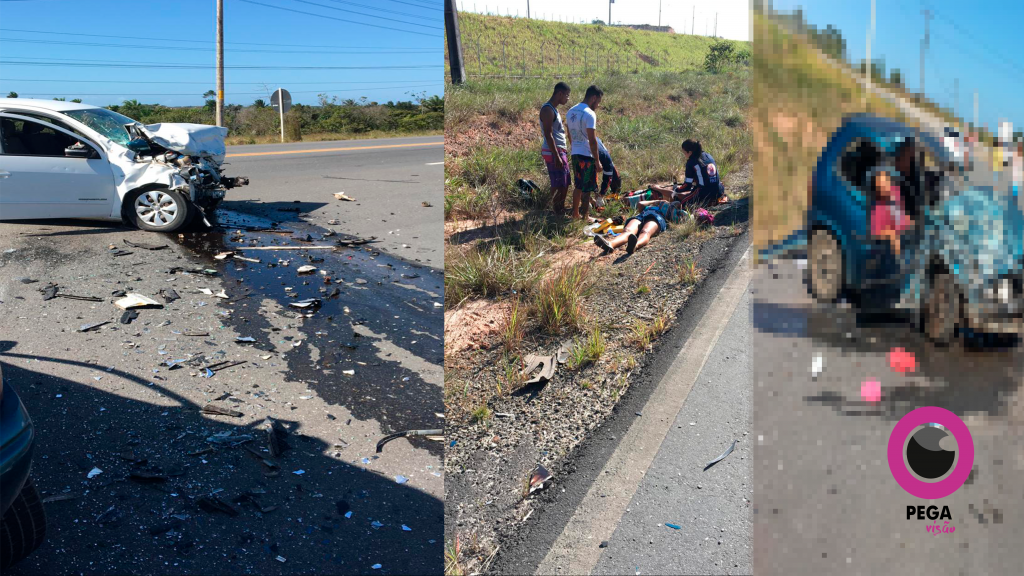 Uma colisão envolvendo dois carros (um GM/Corsa azul e VW/Voyage branco) deixou uma pessoa morta e duas feridas, na tarde deste domingo (20/10), em Camaçari.