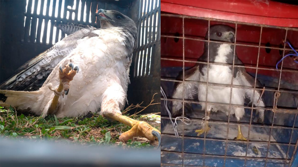 De acordo com um dos representantes da Falcons, a ave chegou muito debilitada, com alguns ferimentos, e com aparência de uma alimentação inadequada, desnutrida e abatida.