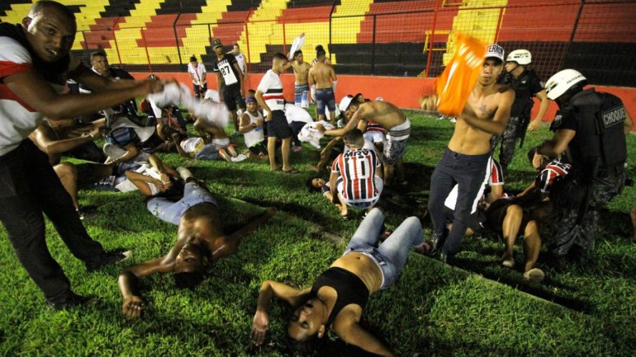 Revoltados, vários torcedores do Santa Cruz entoavam o canto de “pior polícia do Brasil”. Outra parte cantou alto ameaçando invadir o campo. E a Polícia, por sua vez, usou spray de pimenta para dispersar os mais exaltados, que tentavam forçar um portão.