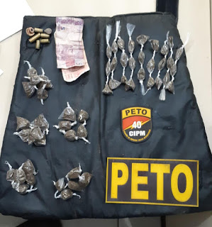 As guarnições patrulhavam, na região do campo de futebol do Vale das Pedrinhas, quando cerca de seis homens correram. Após perseguição, Anderson Andrade Alves, o ‘Perninha’, foi alcançado com 27 porções de maconha. Indagado sobre o local onde armazenava mais entorpecentes, o criminoso levou os militares até a Rua do Japão onde Carlos Henrique dos Santos Souza terminou capturado. Com ele os PMs localizaram mais 26 porções de maconha e uma placa de colete balístico.