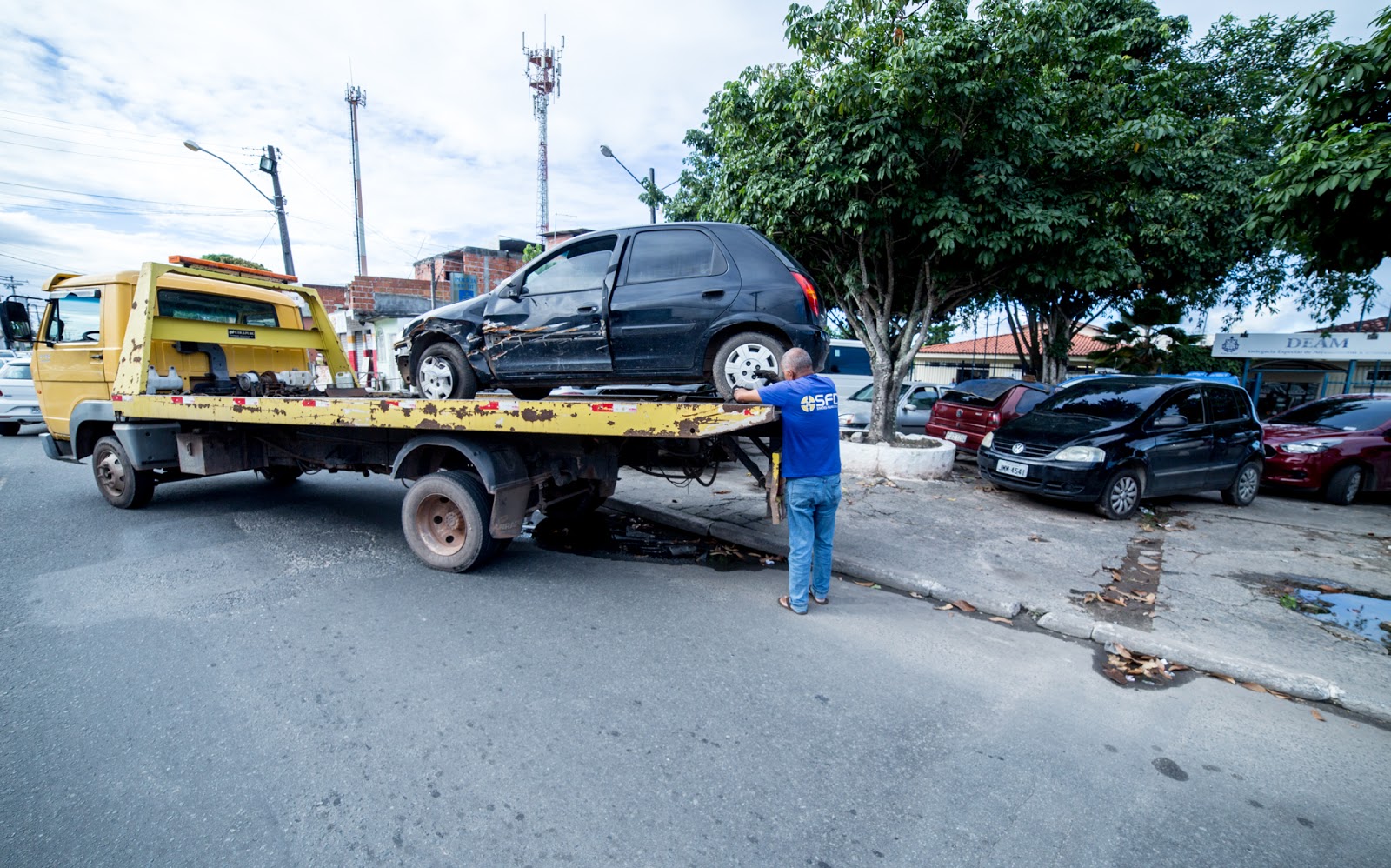 Atendendo a um apelo antigo da população, o prefeito Antonio Elinaldo determinou a retirada dos veículos sinistrados (que sofreram danos ou perdas materiais em virtude de acidente) que se encontram estacionados no passeio e na frente da18ª Delegacia Territorial (DT) de Camaçari, situada à Rua Delegado Clayton Leão Chaves. Nesse sentido, a Superintendência de Trânsito e Transporte Público (STT) de Camaçari deu início à ação de remoção dos automóveis, que visa garantir a segurança dos pedestres e a livre circulação pelo local.